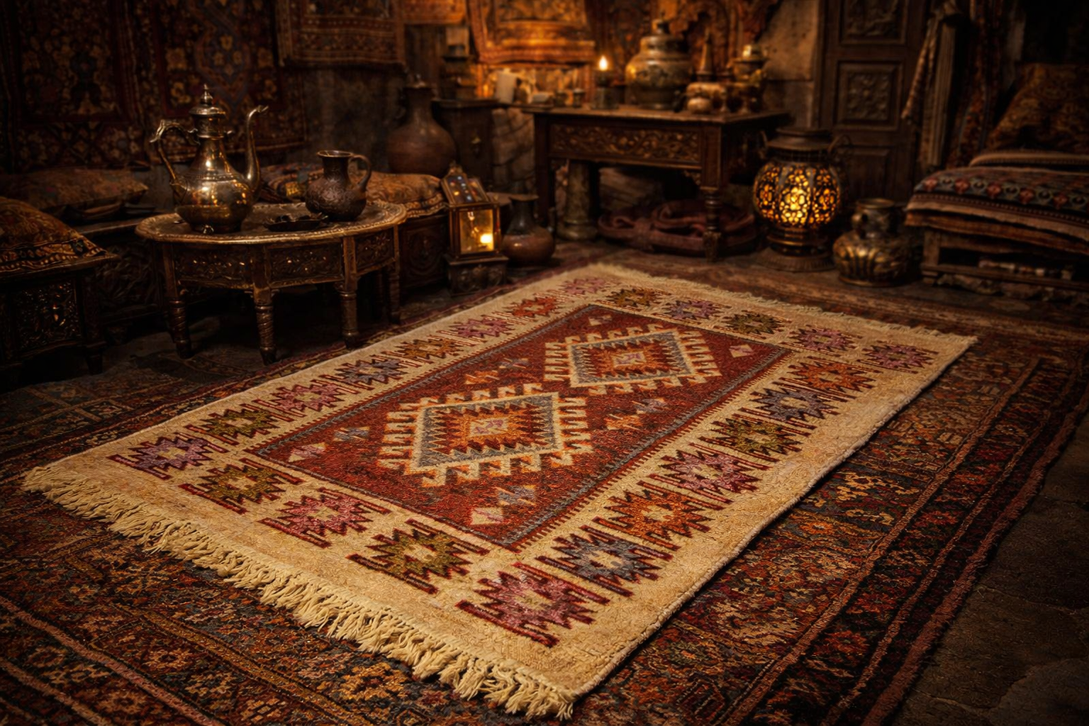 Palandoken Turkish Carpets & Rugs, operating under the name Palandoken Turkish Carpets & Rugs in Uşak Province, Turkey, brings traditional Anatolian motifs to modern living spaces with our Antique Machine Kilim collection, interpreted with a nostalgic twist. Produced using special weaving techniques, these kilims combine the elegance of the past with the durability of the present.