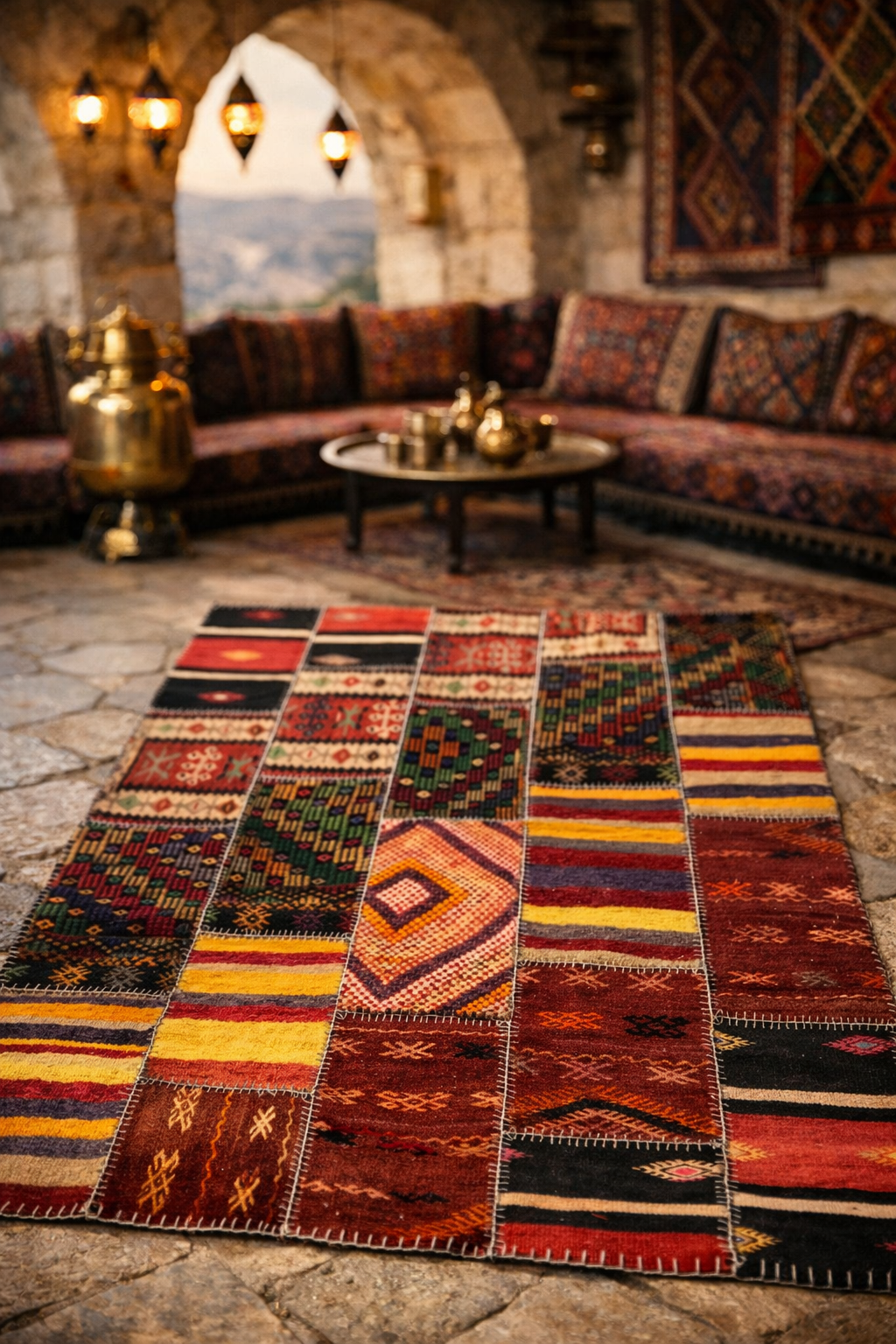 Patchwork rugs are modern and artistic creations made by combining different rug pieces. Each piece carries its own story, and when combined, they create a unique design. Thanks to the variety of colors and patterns, they add a distinctive character to your decor.